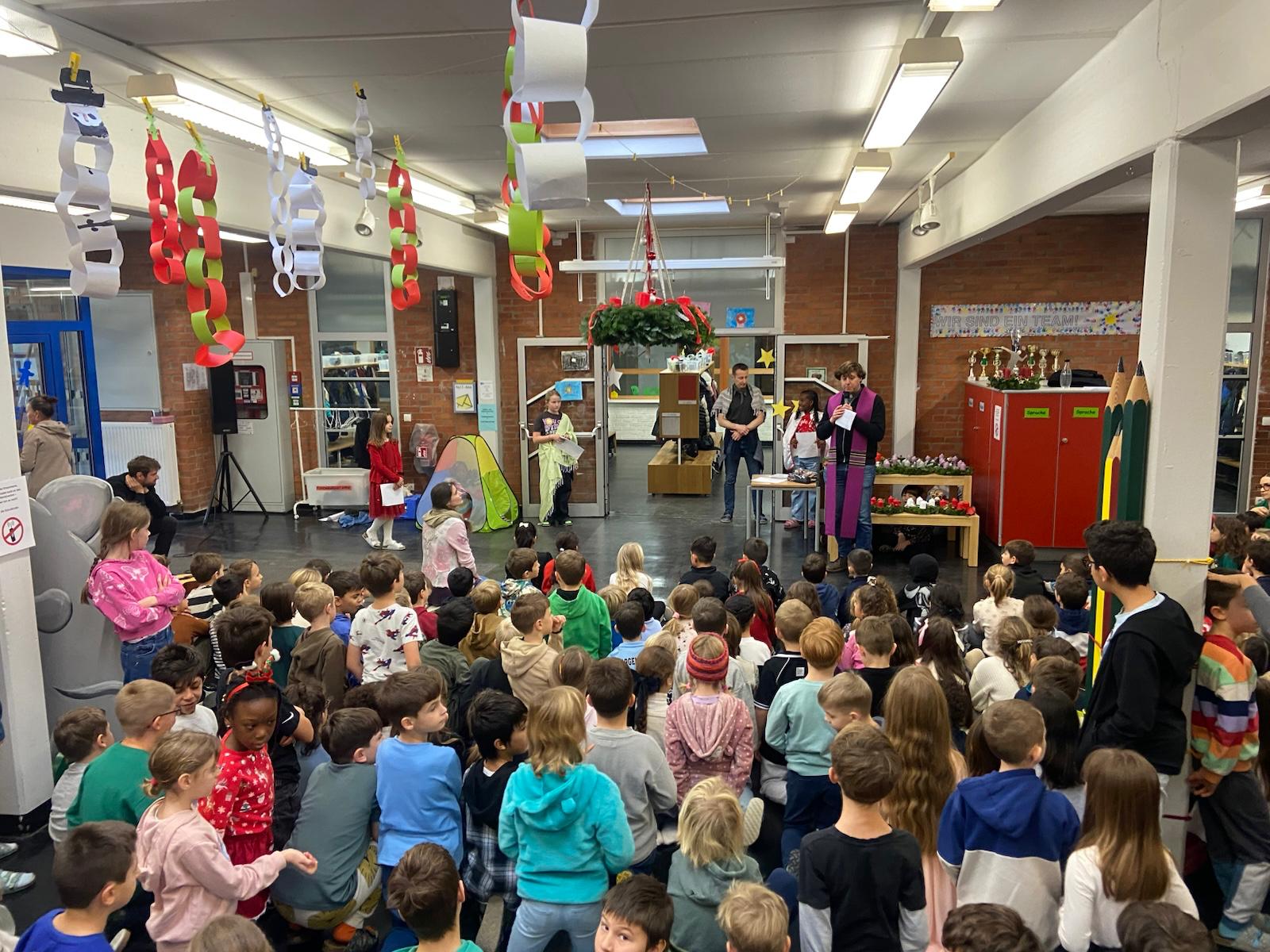 Im Mittelpunkt stand die Geschichte Abrahams, der sich voller Vertrauen auf den Weg machte und hoffte, obwohl das Versprechen Gottes noch nicht erfüllt war. Diese Geschichte wurde durch ein kurzes Rollenspiel veranschaulicht: Abraham und Sara empfingen darin drei Männer (Boten Gottes) in ihrem Zelt in der Wüste… Wie Abraham warten auch Christinnen und Christen in der Adventszeit auf das Licht von Weihnachten, auf Jesus. Der Adventkranz selbst symbolisiert Hoffnung, den Weg, Unendlichkeit und Zuversicht.
