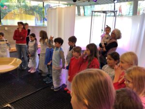 Am Montag, 10.11.2025, sind die Kinder der 2c am Hinweg zuerst mit dem Bus gefahren und dann noch durch den Augarten gegangen. Es war ein wunderschöner, sonniger Tag. Bei Frida und Fred haben sie dort Seifenblasen gemacht. Außerdem haben sie auch viel Schaum hergestellt.