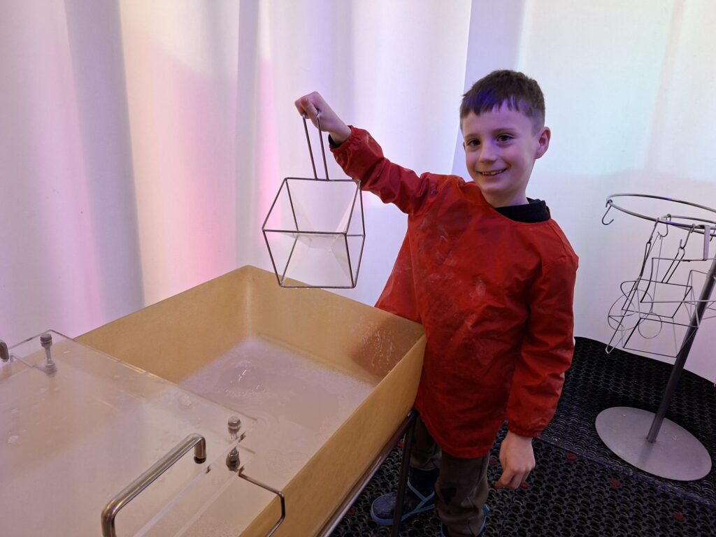 lernten Zaubertricks mit Seifenlauge. Mit geometrischen Formen entstanden sogar eckige Seifenblasen.