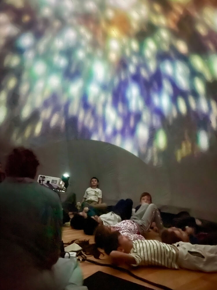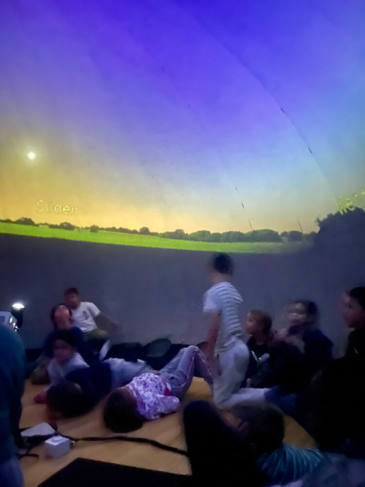 Drei Tage lang verwandelte sich der Turnsaal der Volksschule Murfeld in ein faszinierendes Weltall-Erlebnis. In der beeindruckenden aufblasbaren Kuppel konnten die Schülerinnen und Schüler eine Unterrichtsstunde lang Planeten aus nächster Nähe bestaunen, Himmelskörper erforschen und Sternbilder entdecken. Dabei wurden viele spannende Fragen rund um das Universum beantwortet.