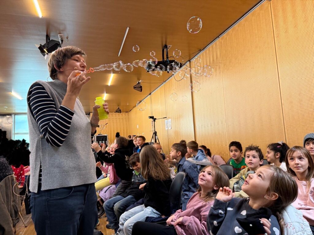 Wir durften Sanna, Alma und Mo auf ihrem fantasievollen Weg durch die Stadt zur Schule begleiten: Brücken ragten über tiefe Betonschluchten, auf der Baustelle lauerten plötzlich Säbelzahntiger und Bären, und ein Supermarktparkplatz verwandelte sich in eine glühend heiße Savanne. Die Kinder hörten gespannt zu und ließen sich ganz in die Abenteuerwelt hineinziehen.