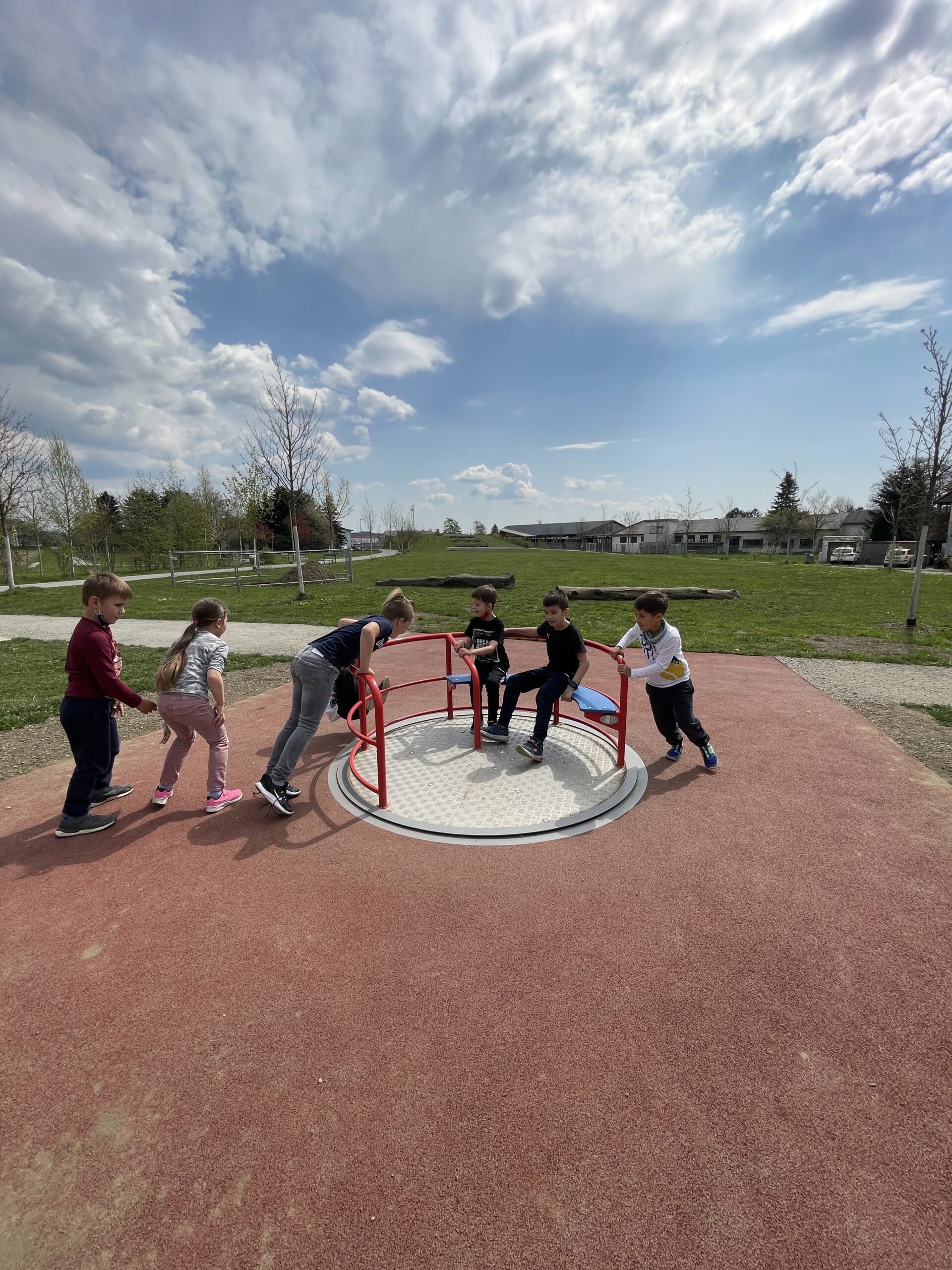Wir sind gemeinsam zum Spielplatz gelaufen. Dort war es sehr toll und wir haben viel gespielt! (Noah)