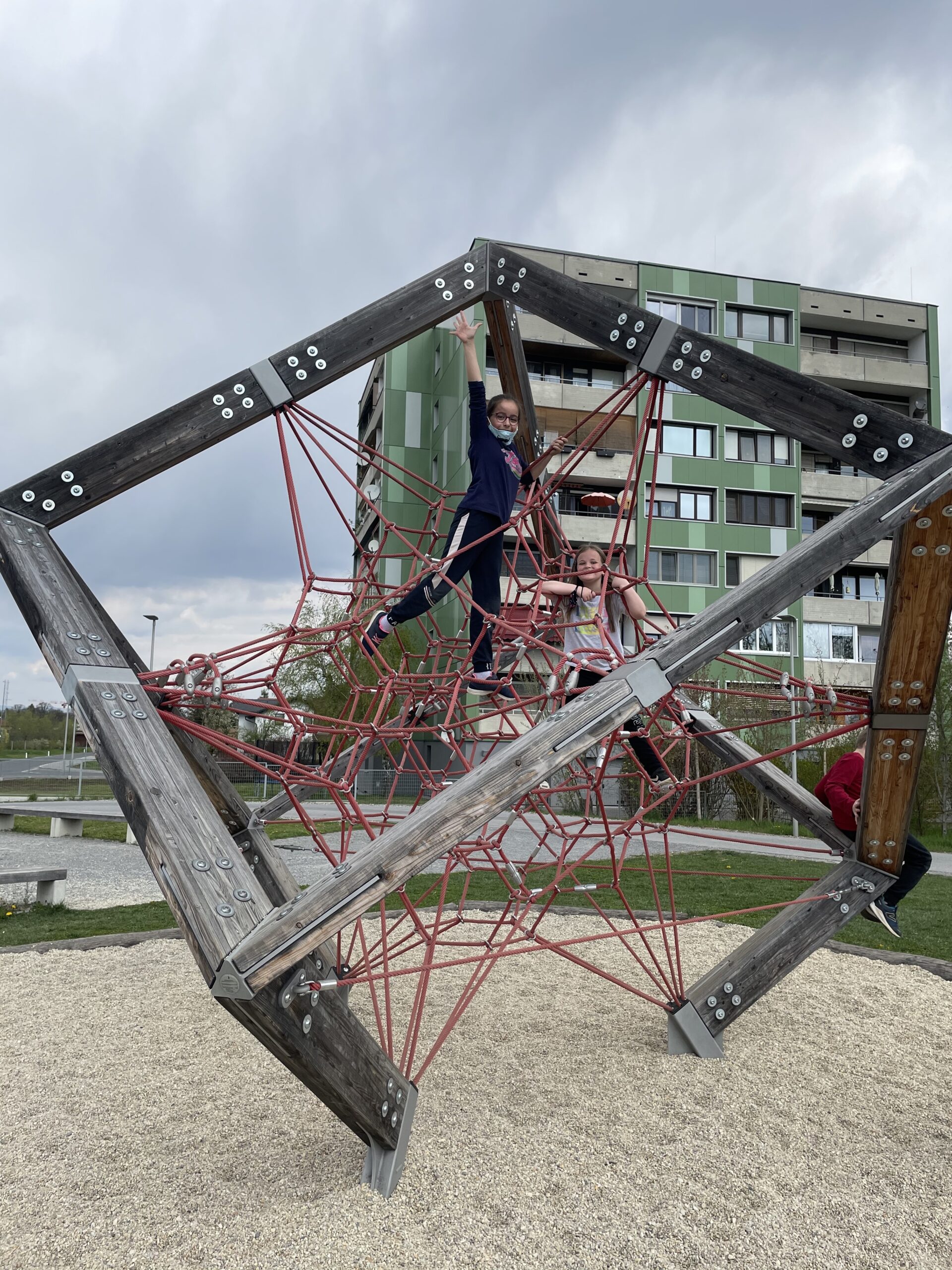 Mir ist sofort das Klettergerüst und die Brücke/Wippe aufgefallen. (Anis)