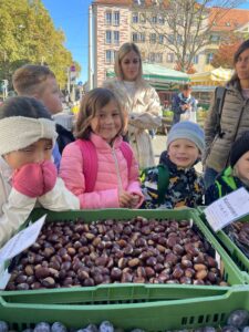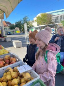 Am Montagvormittag bei schönem Wetter besuchten die Schülerinnen und Schüler der Bienenklasse den Bauernmarkt am Kaiser Josef Platz. Der Einkauf von regionalen Produkten bereitete den SchülerInnen große Freude. Eifrig wurde das Wechselgeld gezählt. Am nächsten Tag in der Schule wurde alles verkostet. Ein Obstsalat- eine gesunde Jause, die allen Kindern gut geschmeckt hat. Einige SchülerInnen wurden zum Kohlrabifreund.