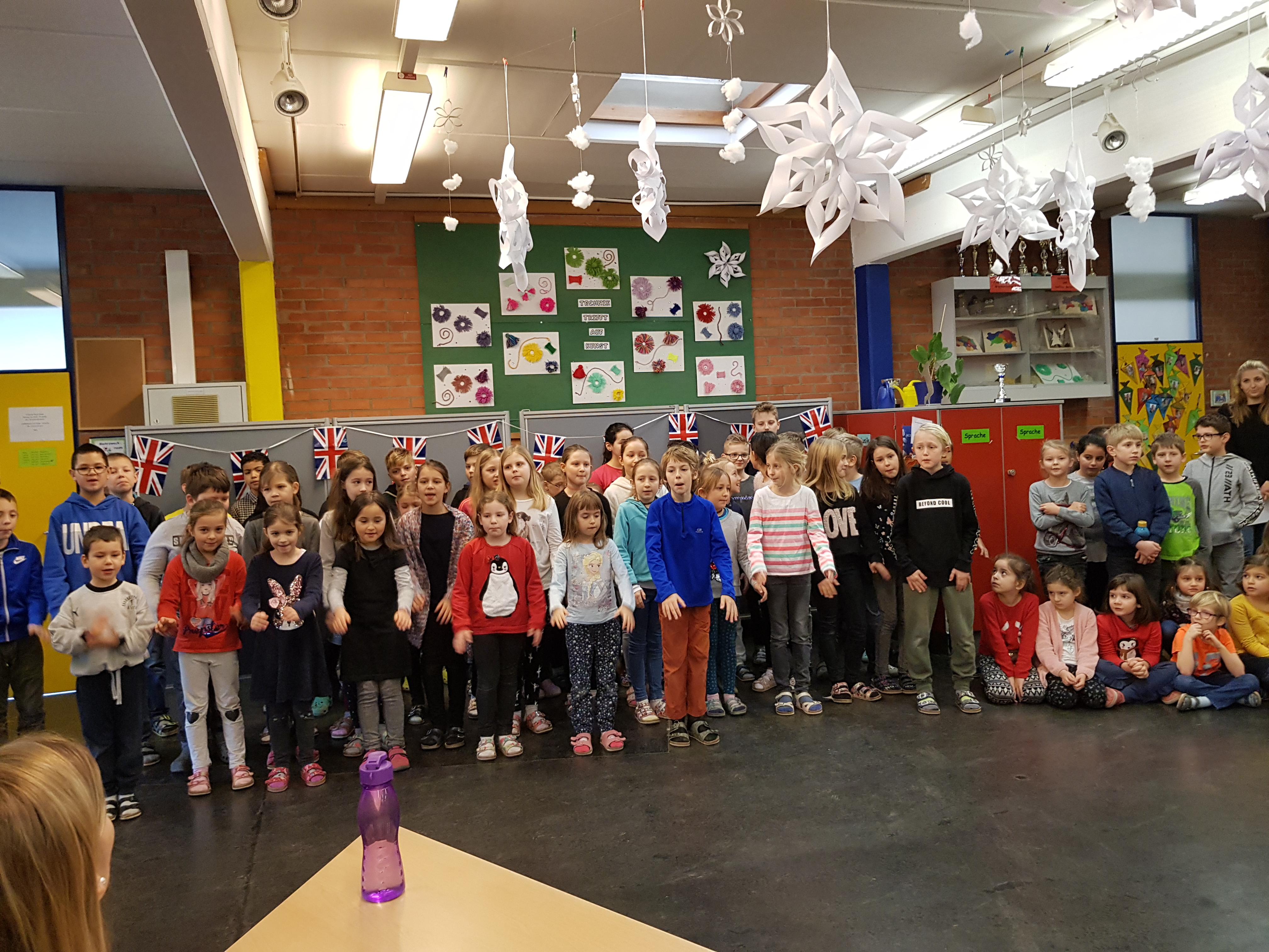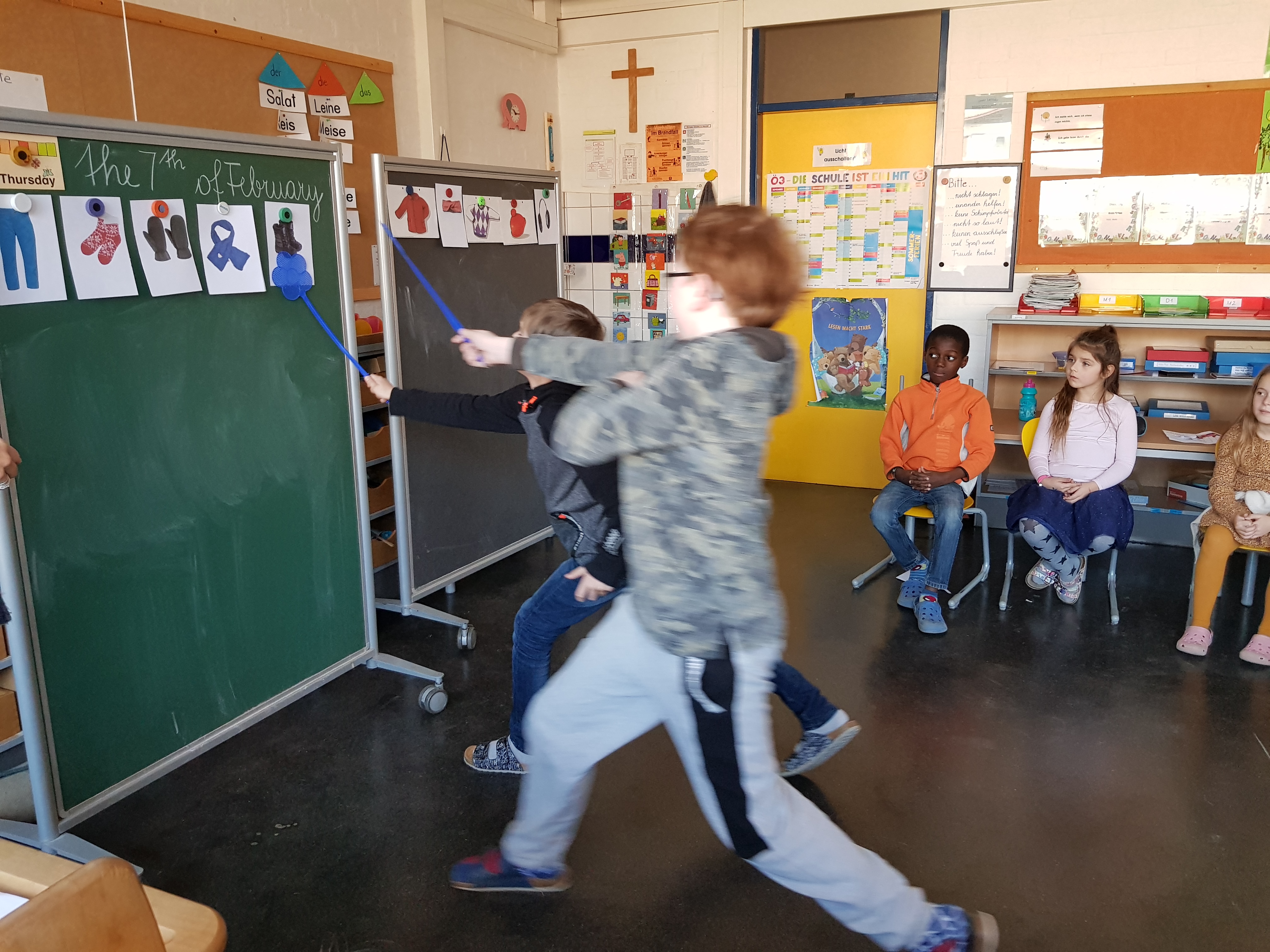Am 7.2. fand in unserer Schule ein klassenübergreifender Englischtag statt. An zwölf verschiedenen Stationen konnten die Kinder Spiele, Übungen, Bücher und Lieder in englischer Sprache kennenlernen, ausprobieren und erleben – somit in die Sprache eintauchen.
